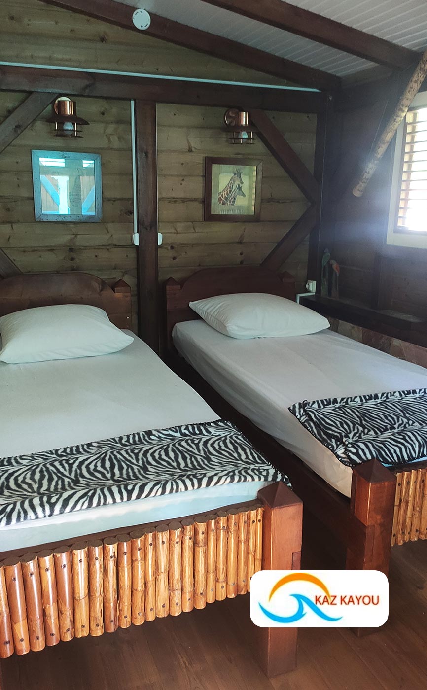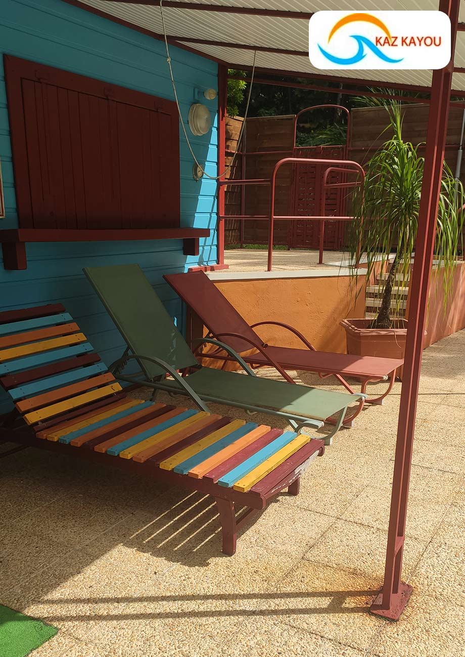 Les bungalows de Kaz Kayou sont typiquement créoles et construits en bois, situés dans un parc agrémentés d’une belle piscine. Hauts en couleur, le gîte et son parc aux multiples plantes tropicales sont parfaitement entretenus.